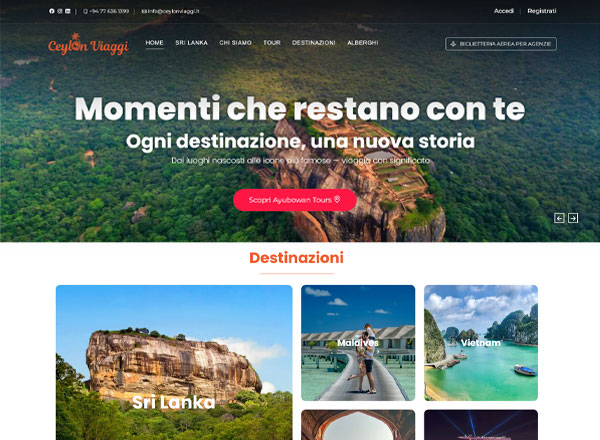 Sito web turistico per Ceylon Viaggi