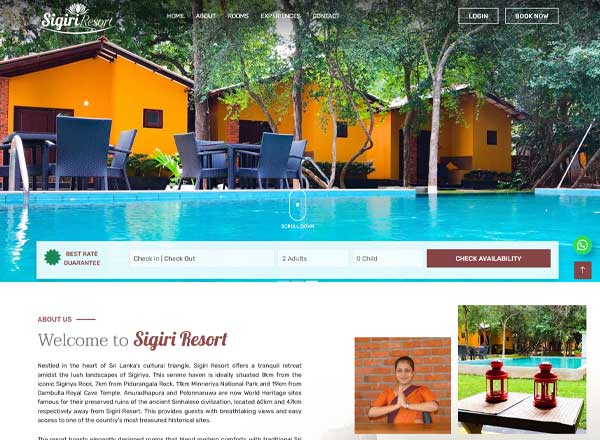 Website for the Sigiri Resort with an online reservation system